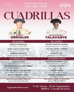 El Coso de «La Ribera» de Logroño acogerá esta tarde el tercer festejo de la Feria de San Mateo, segunda corrida de toros. Se van a lidiar ejemplares de Juan Pedro Domecq para un mano a mano entre Diego Urdiales y Alejandro Talavante