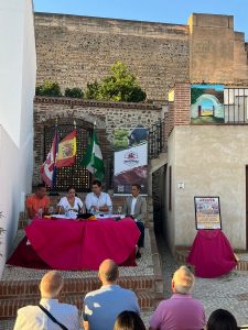 La alcaldesa de la localidad onubense de Aroche, Dña. Cristina Romero, acompañada por el empresario local D. Manuel Sevillano y el ganadero D. José Luis Pereda, ha presentado en la tarde de hoy, miércoles 9 de julio, en el Hotel Casa Palacio Conde del Álamo (Aroche), los festejos de la próxima Feria Taurina de Agosto, que se celebrará en la plaza del municipio los días 22 y 23 de agosto.