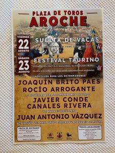 Cristina Romero ha señalado que “La Feria se convierte por excelencia en momento de reencuentros y disfrute, alrededor de la programación cultural y por supuesto, en torno a los festejos taurinos. Estos cada año divierten a los vecinos y atraen a numerosos visitantes. Aroche está adherida a la Red de Municipios Taurinos de Andalucía y el festival taurino que hoy presentamos significa una clara apuesta del Consistorio, ya que supone una tradición cultural que debemos respetar y una inyección economía para el pueblo. La Suelta de Vacas tan arraigada y el festival con figuras tanto a pie como a caballo, junto con los Forcados portugueses, dotan a estos carteles de muchos alicientes para venir a disfrutar del mundo del toro y la hospitalidad de nuestro pueblo. Presentamos una mezcla de ilusión, responsabilidad y orgullo para todos los vecinos de Aroche”.