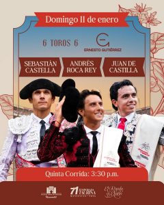 Festival taurino. Tres reses de Juan Bernardo Caicedo y tres de Ernesto Gutiérrez para César Rincón, Alejandro Talavante y Andrés Roca Rey.