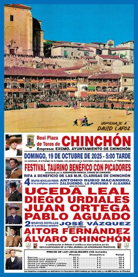 El festival será un homenaje al joven agricultor David Lafoz, fallecido y que fue un símbolo de activismo en favor del campo y del mundo rural. La jornada se desarrollará en un contexto que vinculará al sector primario, agricultura, ganadería con la esencia y tradición de la Tauromaquia y del histórico festival de Chinchón.