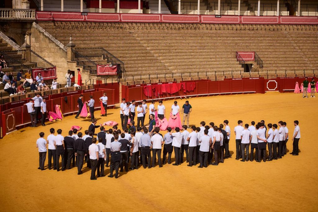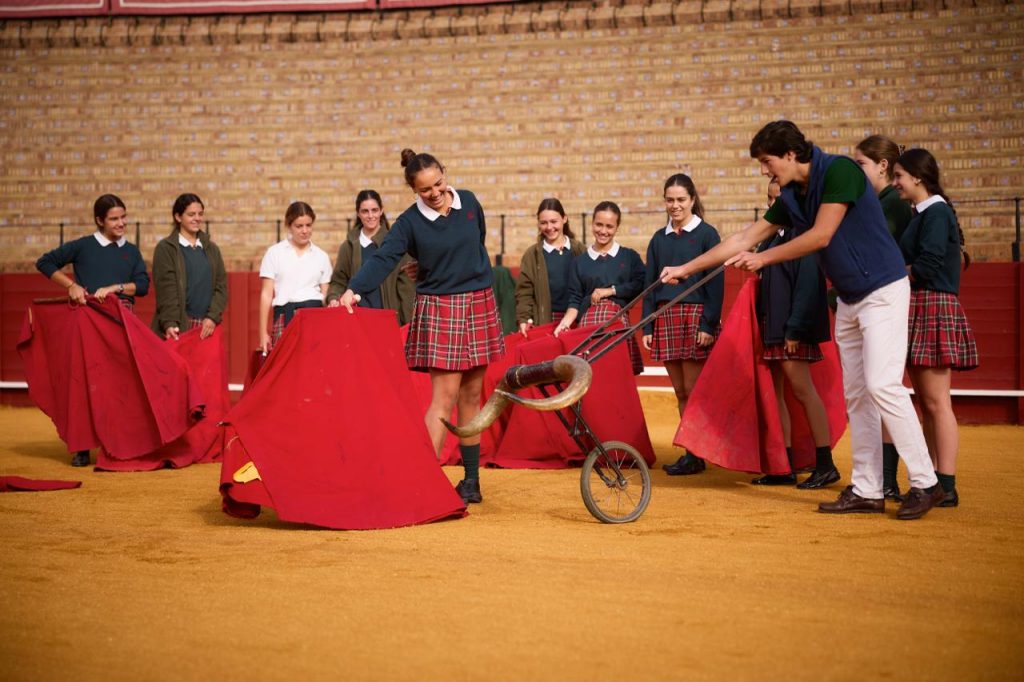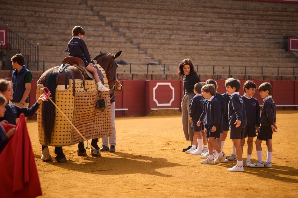 Los alumnos han podido disfrutar de talleres de toreo de salón, conocer las distintas suertes del toreo, coger un capote y una muleta, subirse a un caballo de picar, y aproximarse a la cultura y los valores de la Tauromaquia, en un escenario único como el ruedo de la Maestranza, además de conocer algunas de las dependencias de la plaza de toros.