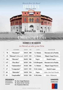 “Mesonero”, de Zalduendo, abrirá la tarde en el Coso de La Merced. Sorteados los toros de la ganadería de Zalduendo para el cuarto festejo de la Feria de Las Colombinas 2024. Trenzarán el paseíllo en Huelva, Morante de la Puebla, Miguel Ángel Perera y Daniel Luque