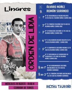 Orden de lidia para la segunda corrida de la Feria de San Agustín de Linares