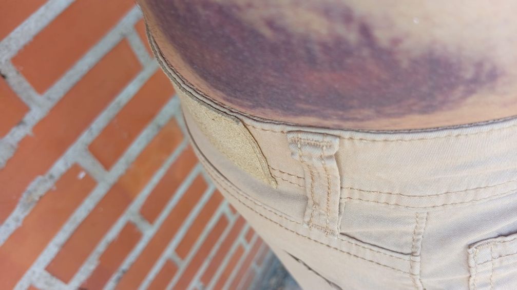 El torero salmantino tiene toda la zona afectada con un fuerte hematoma como se aprecia en la imagen que ilustra esta información.