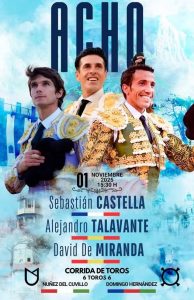 Sábado 1 de noviembre: Toros de Núñez del Cuvillo y Domingo Hernández para Sebastián Castella, Alejandro Talavante y David de Miranda.
