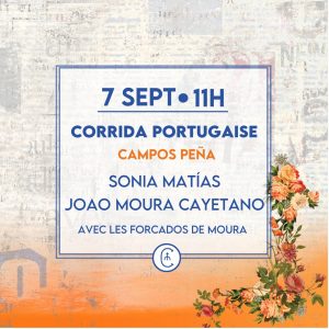 Sábado 7 de septiembre: 11:00 horas. Corrida portuguesa. Reses de Campos Peña para Sonia Matías y Joao Moura Caetano, con los Forcados de Moura.