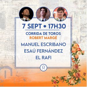 Sábado 7 de septiembre: 17:30 horas. Astados de Robert Margé para Manuel Escribano, Esaú Fernández y El Rafi.