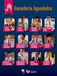 El Grupo 1 actuará en horario matinal en la ganadería de Aguadulce, situada en la provincia de Sevilla. Este primer bloque estará integrado por los siguientes novilleros: Isaac Galvín, Iván Rejas, Dennis Martín, Guillermo Luna, Julio Romero, Juan Jesús Rodríguez, Antonio Santana, Miriam Cabas, Joselito de Córdoba, Francisco Fernández, Pepe Martínez y Alfonso Alonso.