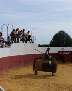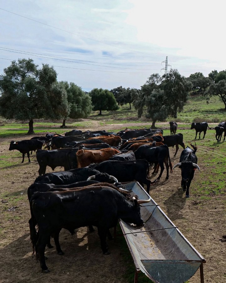 Posteriormente, el matador de toros Pablo Aguado participó en un tentadero en la plaza de tientas de la finca, culminando todo con una comida de hermandad.