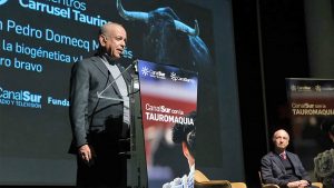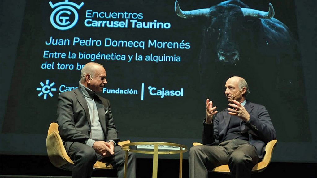 El ganadero Juan Pedro Domecq Morenés ha protagonizado este miércoles, 26 de noviembre, el último “Encuentro Carrusel Taurino” de la temporada que organiza Canal Sur en colaboración con la Fundación Cajasol. En esta ocasión, la intervención ha versado sobre la biogenética y la alquimia del toro bravo. Juan Ramón Romero, director del programa “Carrusel Taurino” de Canal Sur Radio, ha sido el encargado de moderar el evento.