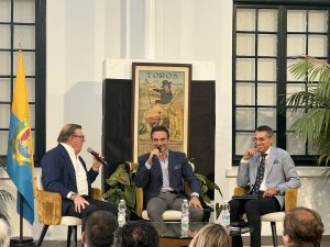 Las XXXVII Jornadas de Tauromaquia Ciudad de Algeciras, tras el pregón que dictase en su jornada inicial D. Antonio Sanz, arrancaba su ciclo de tertulias en la segunda cita con una soberana cátedra sobre todos los aspectos del toreo dictada por Enrique Ponce que, acompañado por César Cadaval, componente de Los Morancos y amigo personal del maestro, hicieron las delicias de los asistentes, que pusieron el cartel de No Hay Billetes en el patio del Museo Municipal de Algeciras.