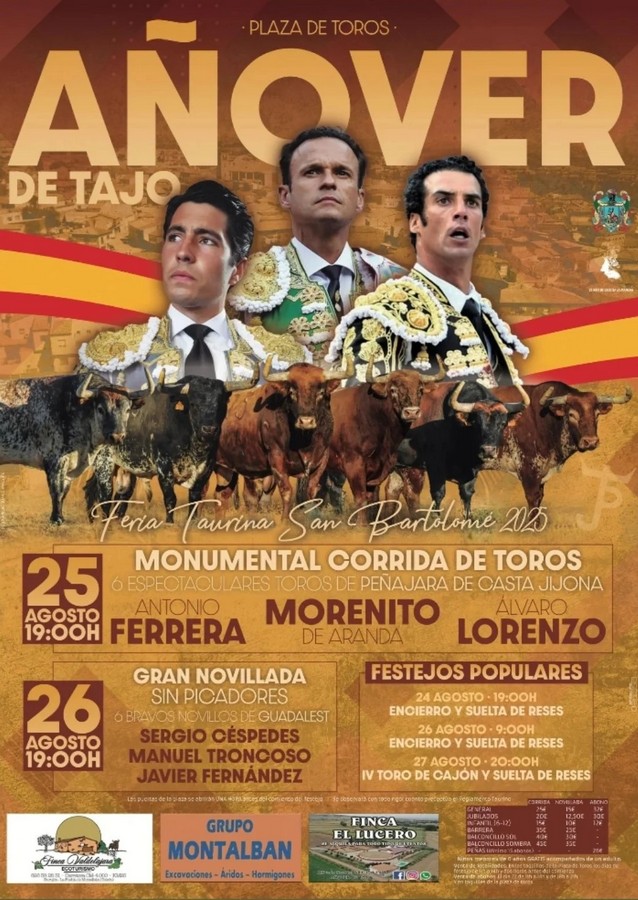 La localidad toledana de Añover de Tajo ya tiene conformada su Feria Taurina de San Bartolomé 2025, que incluye una corrida de toros, una novillada sin caballos y varios festejos populares.