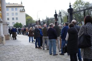 Numerosos aficionados hacen cola desde primera hora de la mañana, dispuestos a conseguir el abono que les dará derecho a presenciar 25 festejos en la Maestranza sevillana.