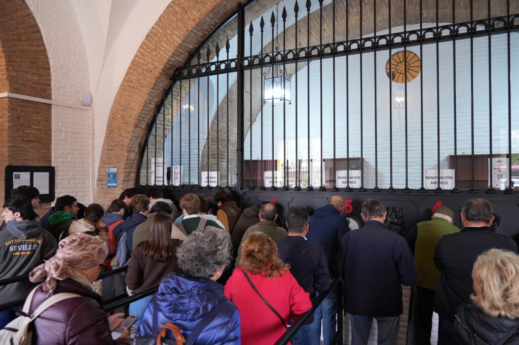 Las taquillas de la Plaza de Toros de Sevilla han abierto sus puertas esta mañana con máxima expectación y largas colas para la renovación y venta de nuevos abonos, en la nueva etapa de Lances de Futuro al frente de la Real Maestranza de Caballería de Sevilla.