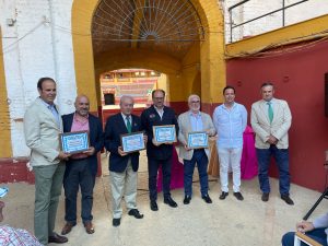 La Peña Taurina Tendido 12, el delegado de la autoridad D. Andrés Nieto, el mozo de espadas Óscar Miguel Gómez y el fotógrafo José Luis Arizmendi fueron los galardonados en una tarde taurina muy onubense