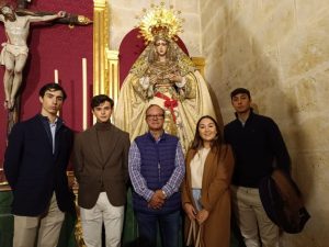 El Convento de San Esteban, de la congregación de los Dominicos, fue la tercera parada de los novilleros, donde realizaron una ofrenda floral a la Virgen de Nuestra Señora de la Esperanza, ubicada dentro del templo.