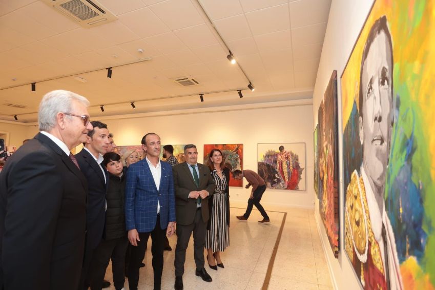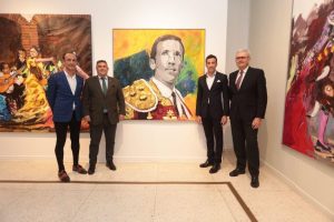 - El pintor ayamontino Alex Rodríguez regala al diestro David de Miranda un lienzo con su imagen de la muestra ‘Miradas, trazos y estilo’