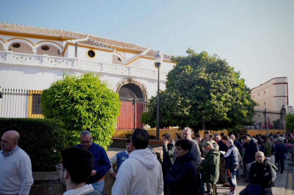 La Real Maestranza de Caballería de Sevilla ha registrado largas colas en el primer día de venta de entradas sueltas para la temporada taurina 2026 de Lances de Futuro.