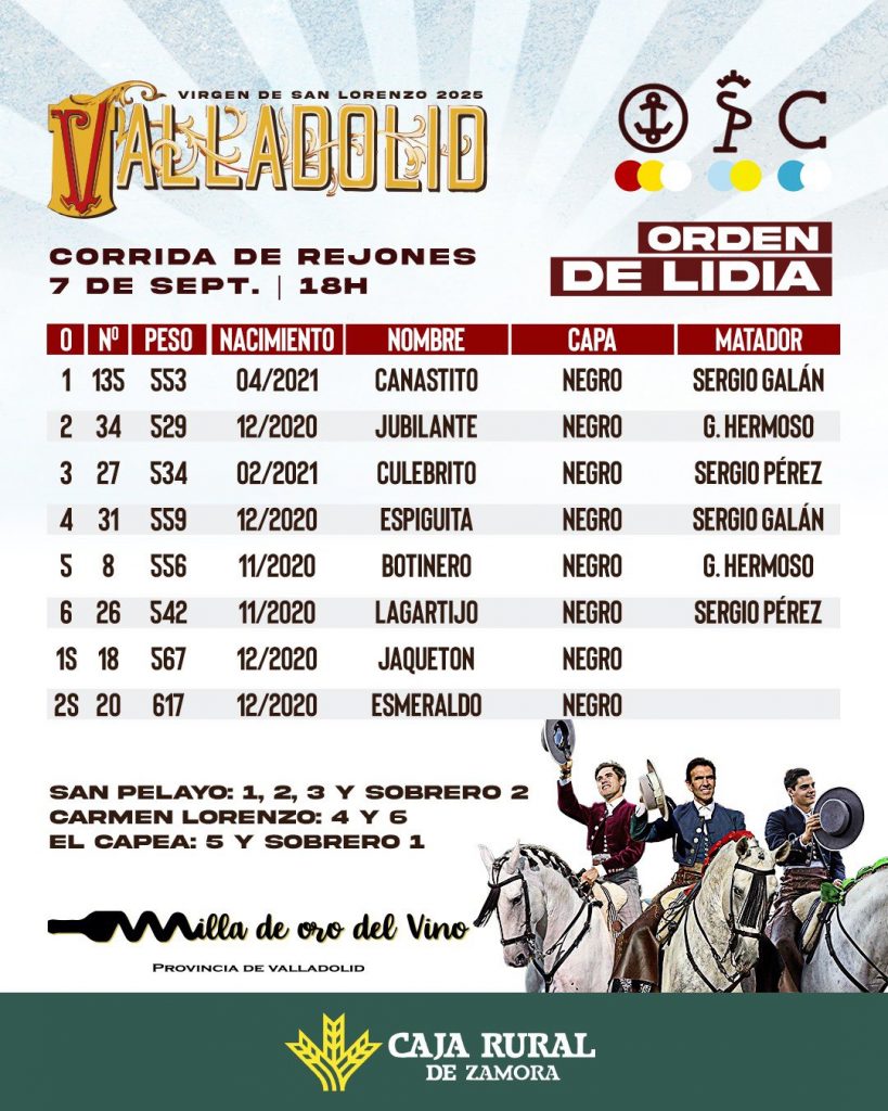Harán el paseíllo Sergio Galán, que sustituye a Andy Cartagena, Guillermo Hermoso de Mendoza y Sergio Pérez de Gregorio