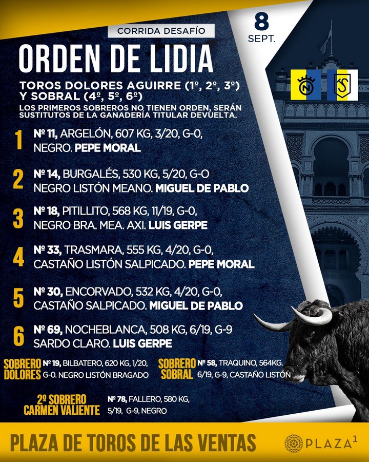 Orden de lidia, cuadrillas y fotos de los toros
