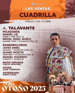 Los cornúpetas del hierro salmantino serán lidiados por Alejandro Talavante, Pablo Aguado y Jarocho, que confirma alternativa
