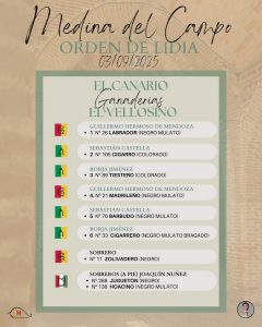 03 Sep ActualidadLos astados de El Canario y Vellosino para Medina del Campo Posted on 03/09/202503/09/2025 by Redacción Los astados de El Canario y Vellosino para Medina del Campo La terna de actuantes está compuesta por Guillermo Hermoso de Mendoza, Sebastián Castella y Borja Jiménez Orden de lidia y cuadrillas Los astados de El Canario y Vellosino para Medina del Campo Los astados de El Canario y Vellosino para Medina del Campo Los astados de El Canario y Vellosino para Medina del Campo Los astados de El Canario y Vellosino para Medina del Campo Espectáculos Marisma Redacción Presentada la Feria Taurina de Jadraque Los novillos de Saltillo para la segunda del Alfarero de Oro