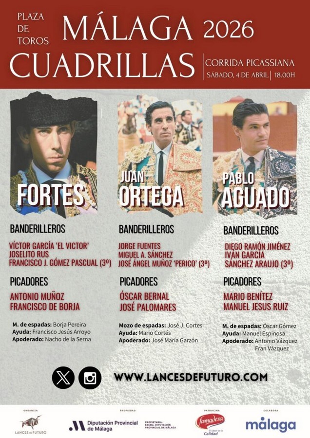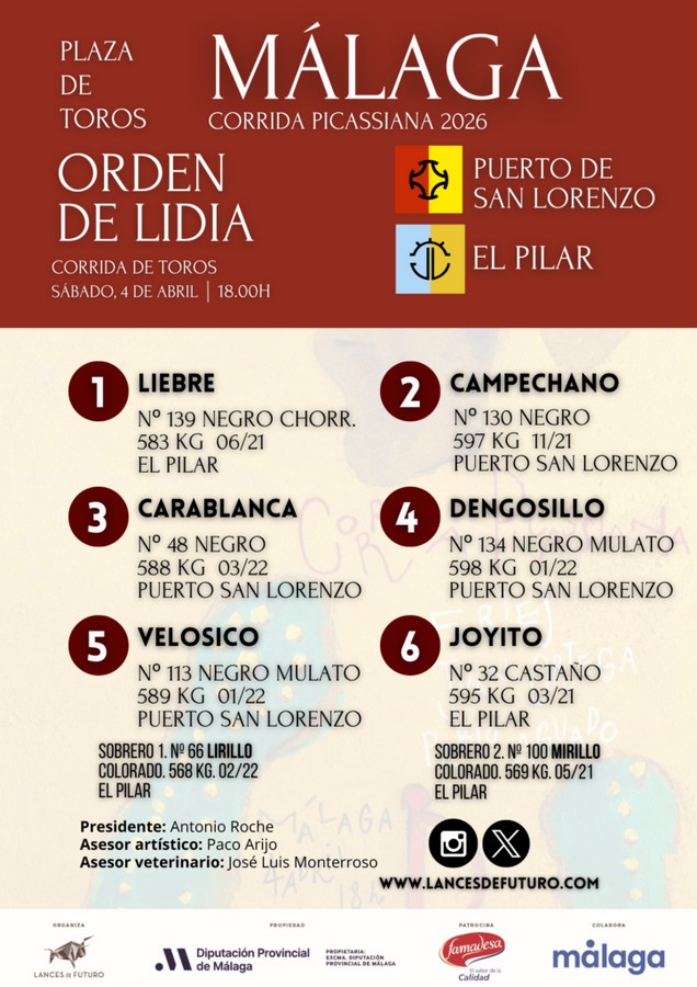 04 Abr ActualidadLos astados de El Pilar y Puerto de San Lorenzo para Málaga Posted on 04/04/202604/04/2026 by Redacción Los astados de El Pilar y Puerto de San Lorenzo para Málaga El cartel está integrado por Fortes, Juan Ortega y Pablo Aguado Orden de lidia y cuadrillas Los astados de El Pilar y Puerto de San Lorenzo para Málaga Los astados de El Pilar y Puerto de San Lorenzo para Málaga Redacción Hugo Masiá sale a hombros en Arles Los toreros se estrellan con una mala corrida en Málaga