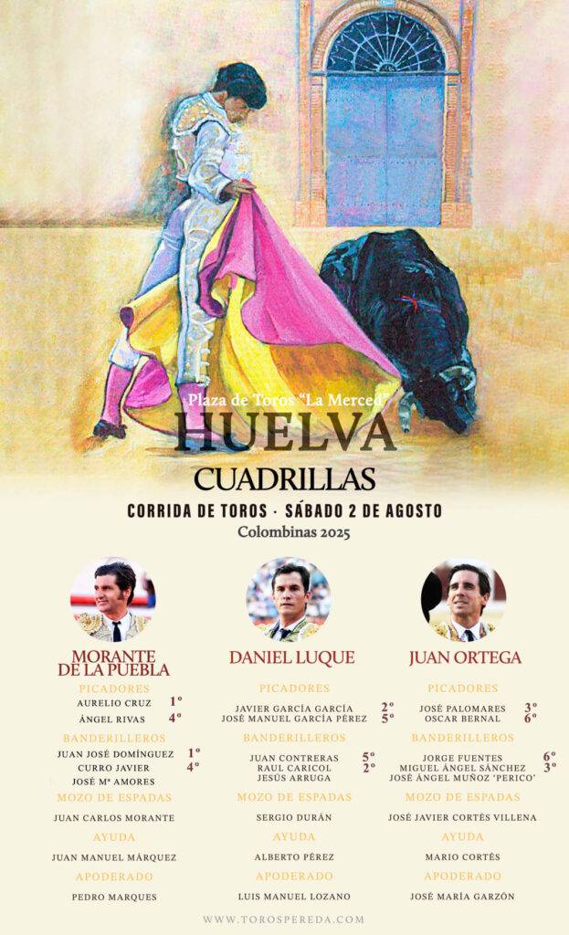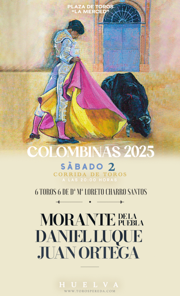 Los toros de Dña. María Loreto Charro Santos ya han sido enlotados, sorteados y enchiquerados a expensas de ser lidiados esta tarde en la Feria Taurina de Las Colombinas 2025. Un cartelazo de máximo relumbrón en el Coso de la Vega Larga que está formado por Morante de la Puebla, Daniel Luque y Juan Ortega.