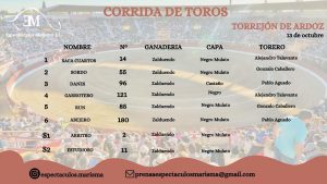 Los astados de la ganadería de Zalduendo que saltarán esta tarde al coso madrileño de Torrejón de Ardoz en la III Corrida a favor de la Fundación ‘La Sonrisa de María’