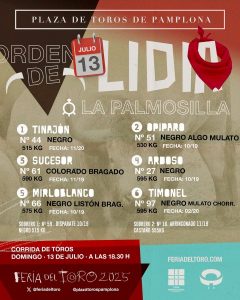 13 Jul ActualidadLos ejemplares de La Palmosilla para Pamplona Posted on 13/07/202513/07/2025 by Redacción Los ejemplares de La Palmosilla para Pamplona Los astados de la divisa gaditana serán lidiados por Fortes, Fernando Adrián y Ginés Marín Orden de lidia y cuadrillas Los ejemplares de La Palmosilla para Pamplona Los ejemplares de La Palmosilla para Pamplona Feria del Toro – Casa de Misericordia Redacción Rafaelillo, ocho costillas fracturadas Puerta grande y cornada para Mario Vilau en Ceret