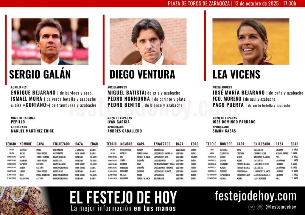 Actuarán los rejoneadores Sergio Galán, Diego Ventura y Lea Vicens