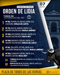 Los animales de Victoriano del Río serán protagonistas junto a Emilio de Justo, Borja Jiménez y Andrés Roca Rey de la Corrida de la Cultura, en el que será 25º festejo de San Isidro