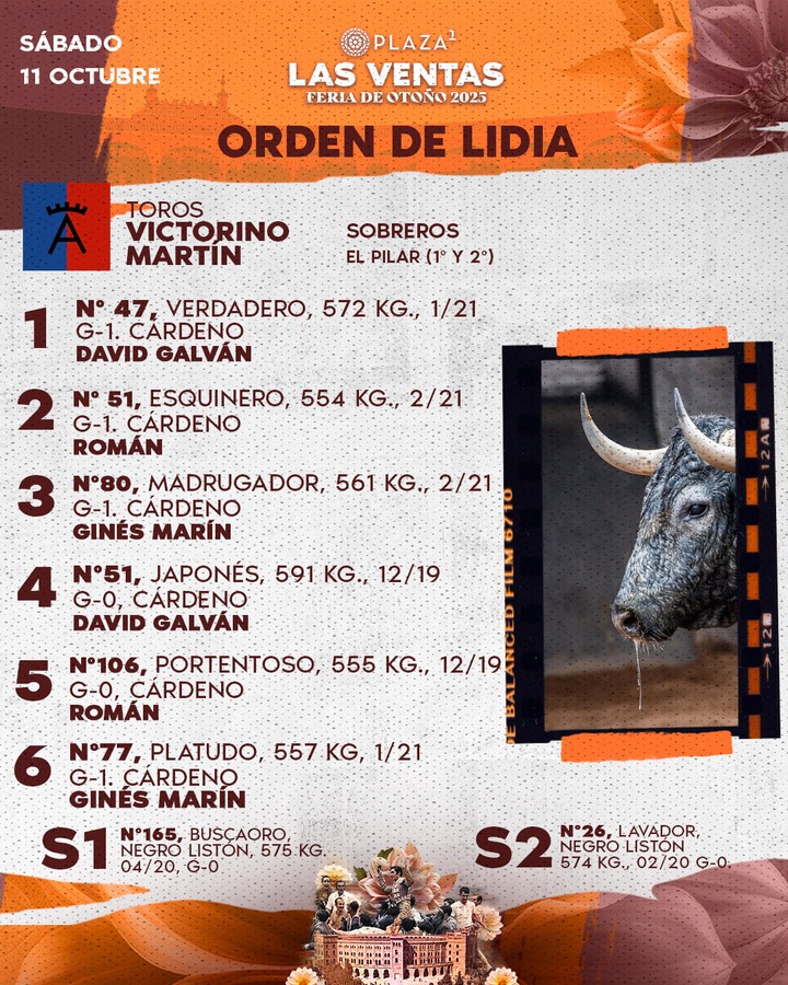 Orden de lidia y fotos de los toros