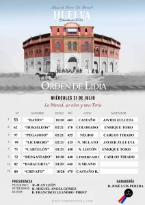 31 Jul ActualidadLos novillos de José Luis Pereda para hoy en Huelva Posted on 31/07/202431/07/2024 by Redacción Las Colombinas de Huelva viven esta tarde su segundo capítulo. Se lidiarán astados de José Luis Pereda para Javier Zulueta, Enrique Toro y Carlos Tirado, los dos últimos debutantes con caballos Orden de lidia, cuadrillas y sorteo Los novillos de José Luis Pereda para hoy en Huelva Los novillos de José Luis Pereda para hoy en Huelva Los novillos de José Luis Pereda para hoy en Huelva Fotos: Toros Pereda Redacción Los toros de Loreto Charro para la primera de Azpeitia Alternativa de Pablo Atienza en Almazán