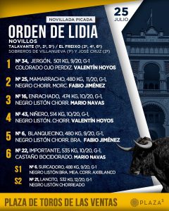 Esta noche se celebra la Gran Final del Certamen ‘Cénate Las Ventas’, que ha venido desarrollándose durante todos los jueves del mes de julio en el coso de la Calle Alcalá. Se lidian utreros de Talavante y El Freixo para los tres novilleros finalistas: Valentín Hoyos, Fabio Jiménez y Mario Navas