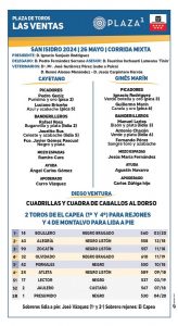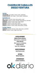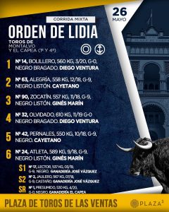 Orden de lidia, cuadrillas, cuadra de caballos y fotos de los toros