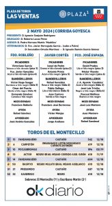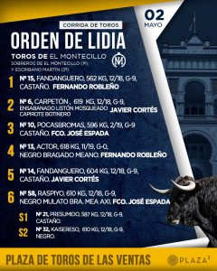 Orden de lidia, cuadrillas y fotos de los ejemplares de El Montecillo