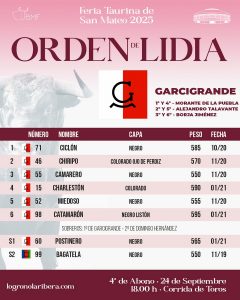 Orden de lidia y cuadrillas