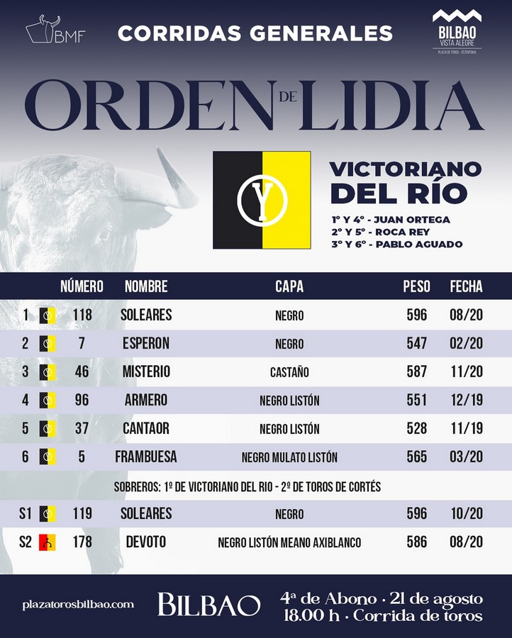 Los ejemplares de la vacada madrileña serán lidiados por Juan Ortega, Andrés Roca Rey y Pablo Aguado