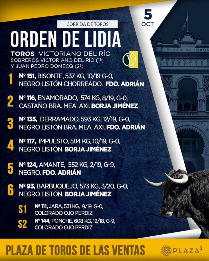 Orden de lidia, cuadrillas y fotos de los toros