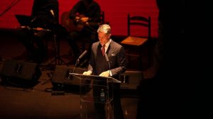 El acto, conducido con elegancia por el periodista José Germán Estela, combinó oratoria y arte con el espectáculo “Solo Flamenco”, de la compañía Neira Santamaría, y con el acompañamiento musical en directo del Dúo Mediterráneo, formado por Óscar Marco y Manuel Rivas, que subrayó la intensidad de cada palabra del torero andaluz.