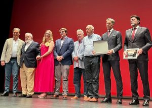 También hubo espacio para hablar de toros. Como buen pregonero, hizo un repaso apasionado por los carteles de la Feria y desveló detalles de la corrida del día 28. “Les voy a hacer, como ahora se dice, un ‘spoiler’: un hijo de Cobradiezmos viene en la corrida que nos envía Victorino. Un toro 105, cárdeno claro, y tan guapo como su padre… Otro es hijo de Jarretero, también toro indultado. Vamos a ver si hacen honor a sus reatas”.