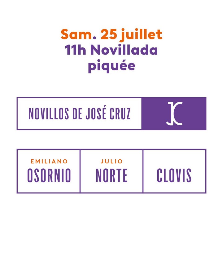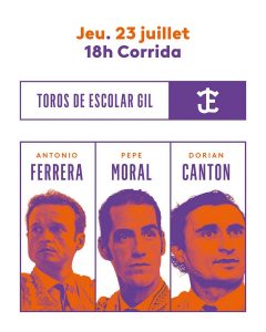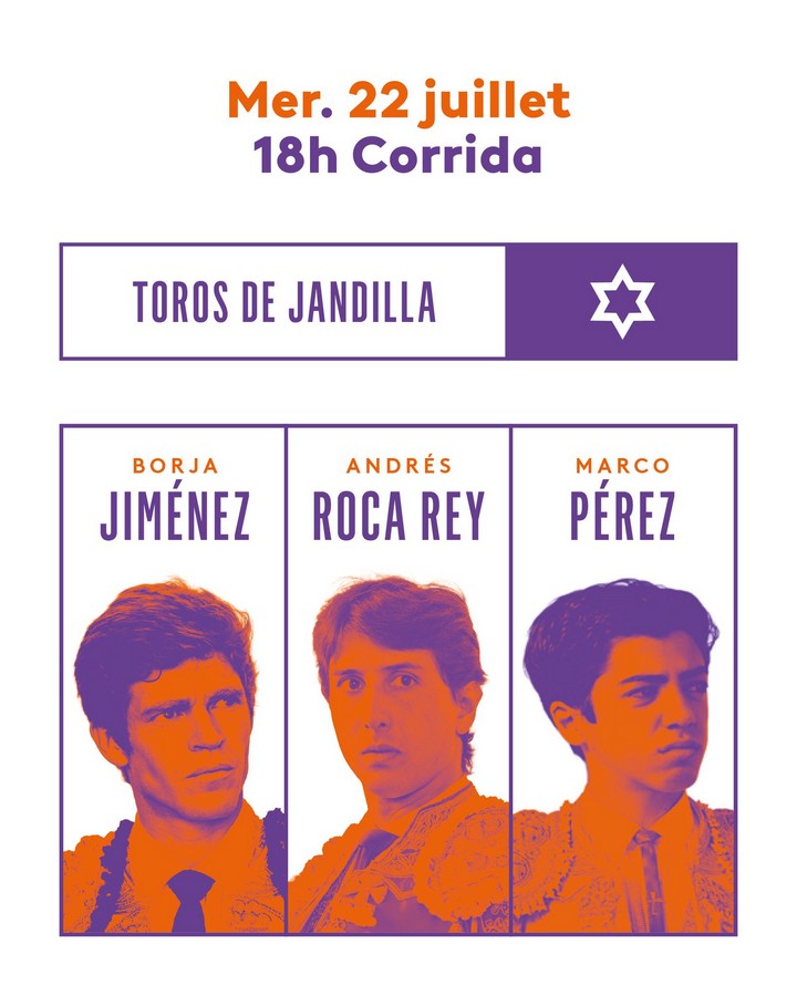 Miércoles 22 de julio: 18:00 horas. Toros de Jandilla para Borja Jiménez, Andrés Roca Rey y Marco Pérez.