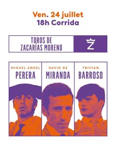 Viernes 24 de julio: 18:00 horas. Ejemplares de Zacarías Moreno para Miguel Ángel Perera, David de Miranda y Tristán Barroso.
