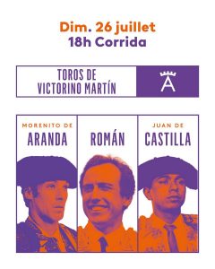 Domingo 26 de julio: 18:00 horas. Cornúpetas de Victorino Martín para Jesús Martínez ‘Morenito de Aranda’, Román y Juan de Castilla.