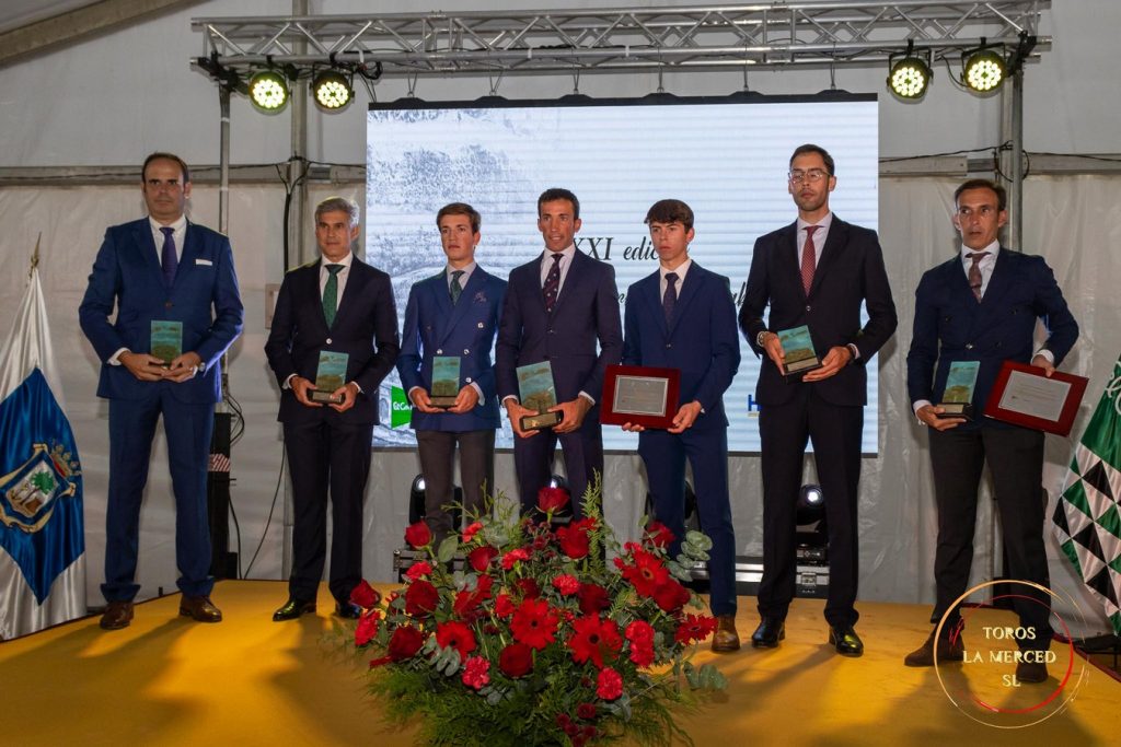 Mejor Toro: ‘Barba Verde’, nº 59, de 510 kilos de peso, de pelo burraco, nacido en abril del año 2020 y perteneciente a la ganadería de D. José Luis Pereda. El animal fue indultado por el diestro David de Miranda en la encerrona que protagonizó el 1 de agosto pasado. El galardón le fue entregado al propio criador onubense por D. Eduardo Barrero, Delegado Territorial en Andalucía de Comunicación y Relaciones Institucionales del Corte Inglés.