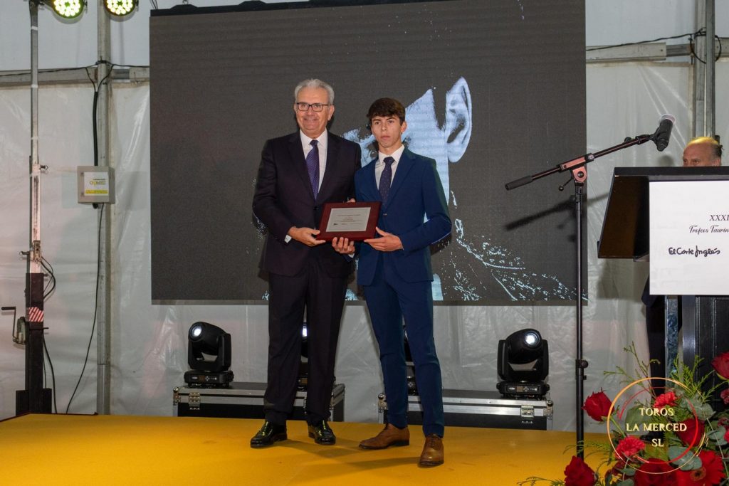 Mejor Novillero sin Caballos: Julio Méndez, entregado por D. Pepe Ruciero, Presidente de la Plaza de Toros de Huelva.