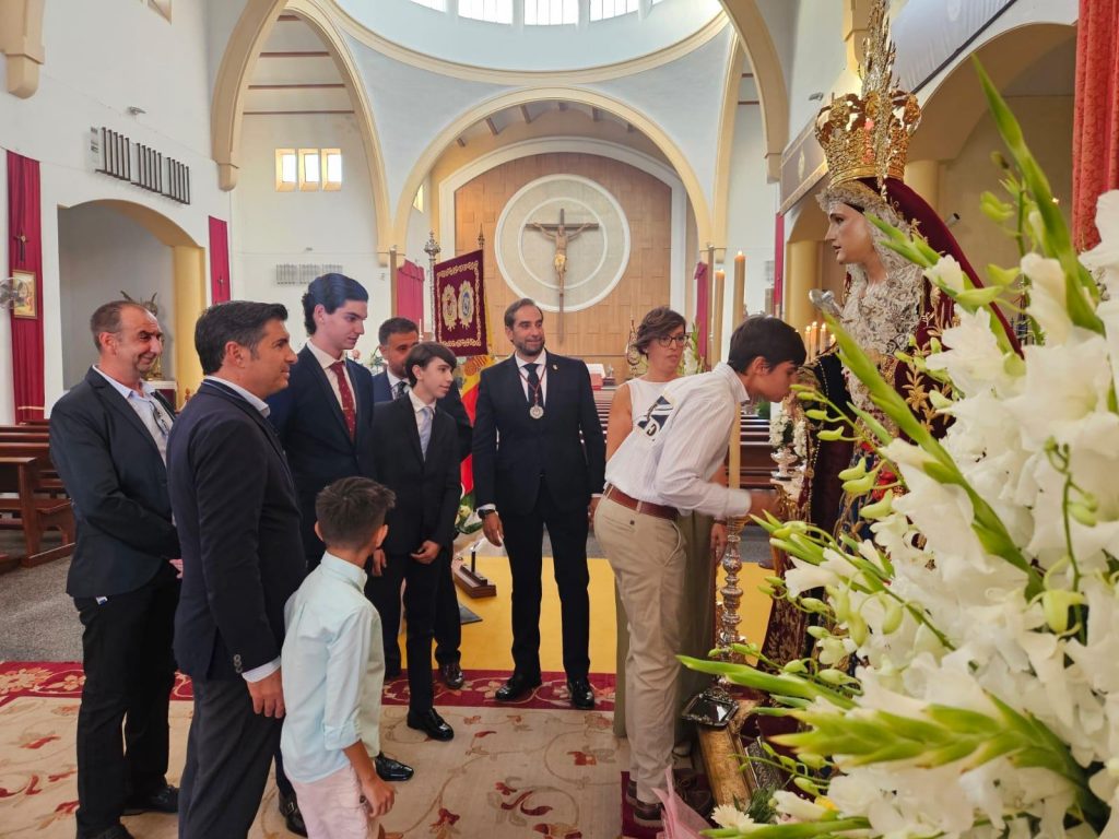La Virgen del Rosario es patrona y madrina de la Escuela Taurina de Linares, razón por la que se llevó a cabo dicho acto en la Iglesia de San Agustín de la localidad jienense.