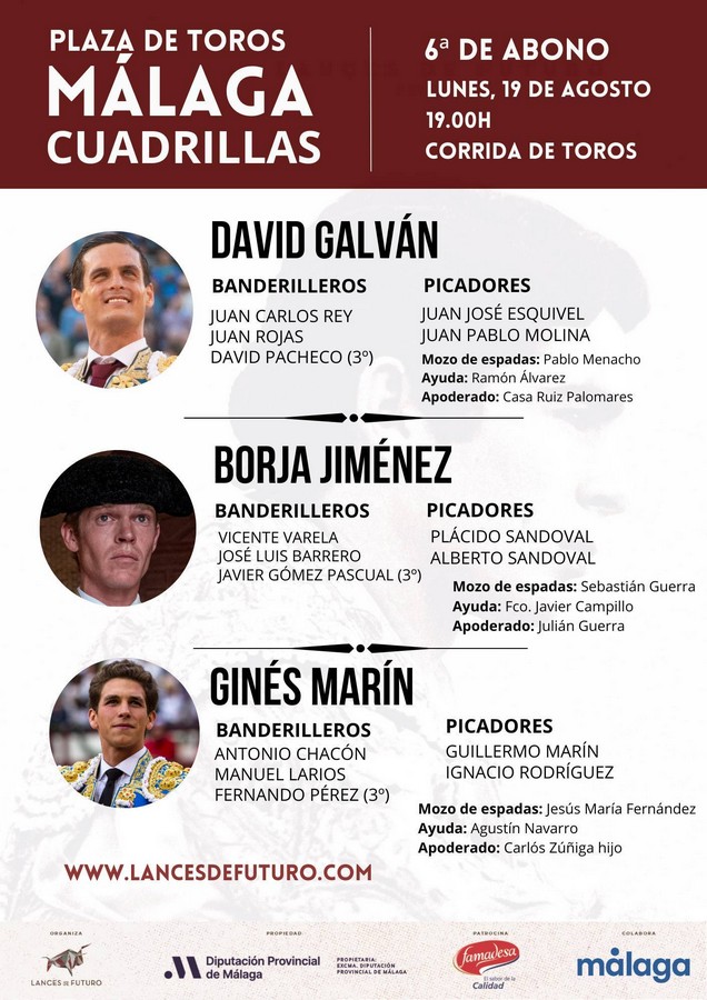 Nueva cita esta tarde en La Malagueta con toros de Lagunajanda para una terna compuesta por David Galván, Borja Jiménez y Ginés Marín